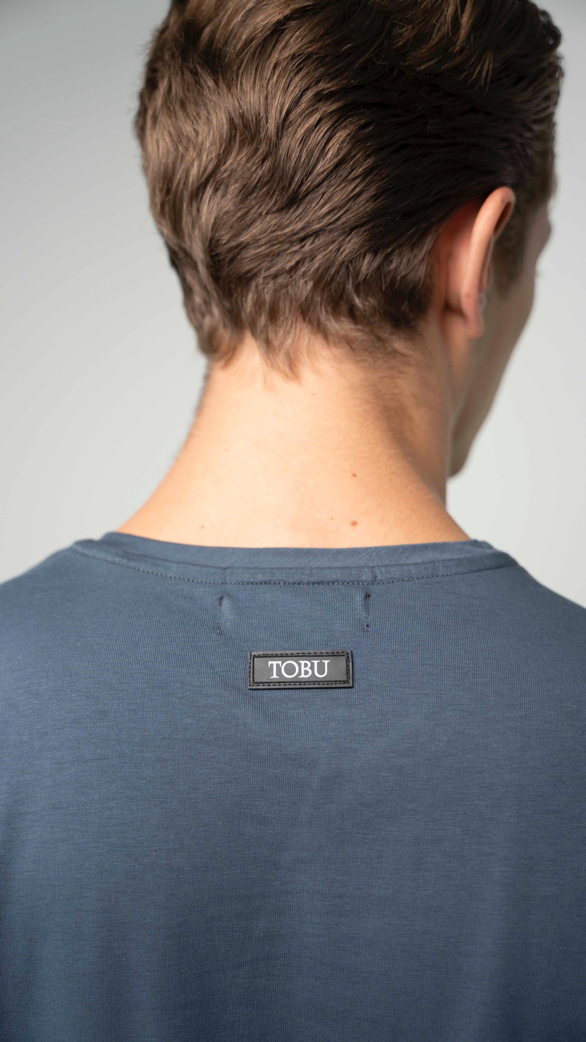 Camiseta color azul petroleo en tela fria, fresca, 100% algodón , manga corta, logo estampado ala Talent Inside en color Negro en el frente izquierdo, Banderin en el costado inferior izquierdo ,Placa Tobu enla espalda a los 3 cms base cuello .